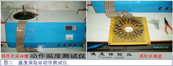 在加熱油鍋內(nèi)放置40個(gè)溫度開關(guān),鍋內(nèi)的溫度從50℃向300℃不斷升溫1℃/分鐘,當(dāng)溫度開關(guān)斷開時(shí)記錄每個(gè)斷點(diǎn)的溫度。在軟件輸入產(chǎn)品型號(hào)、批號(hào)可查詢記錄,程序控溫結(jié)束及時(shí)計(jì)算區(qū)分出產(chǎn)品的合格與不合格品。