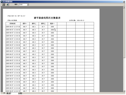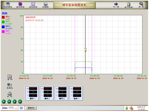 (5)三曲線:歷史曲線提供PV、SV、MV、三曲線運行圖表提供打印功能。