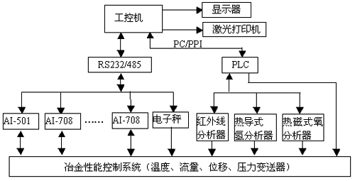 引言:高爐冶煉系統(tǒng)是一個復雜的控制系統(tǒng),對其進行解剖代價高昂。該系統(tǒng)模擬高爐冶煉過程檢測冶煉過程中溫度、壓力、流量、位移、失重等各參數(shù)的變化規(guī)律建立冶金性能測控系統(tǒng)大型實驗室,依據(jù)實驗結(jié)果對高爐冶煉過程提供指導性意見。系統(tǒng)采用集散控制結(jié)構(gòu),現(xiàn)場由廈門宇電的AI智能儀表實現(xiàn)溫度等的精確控制,由PLC來實現(xiàn)過程開關(guān)量、部分模擬量及定時計數(shù)等的過程控制,由工控機實現(xiàn)集中管理。AI智能儀表先進的AIBUS+通訊協(xié)議,支持RS485通訊接口,配合EM-485B模塊構(gòu)成了該系統(tǒng)的計算機通訊系統(tǒng),通過RS-485串行通訊實現(xiàn)19個通道溫度、流量、壓力、位移的集中監(jiān)控。