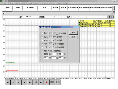 生產(chǎn)過程及物料狀態(tài)可完全由計算機生成實時曲線和報表進(jìn)行監(jiān)測和控制,所有相關(guān)歷史數(shù)據(jù)都用ACCESS數(shù)據(jù)庫進(jìn)行保存,有完善的歷史報表、曲線以便日后查詢。