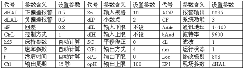 輸入:PTI00鉑電阻顯示二位小數(shù),采用自定義輸入規(guī)格Sn=10根據(jù)法執(zhí): 計算A01=1×1+0×8+1×16+3×64=209,A02=8333 A03=3209 A04=6418 d00 d01等參數(shù),采用表格輸出值就是顯示值如下:將表格內(nèi)參數(shù)輸入儀表。